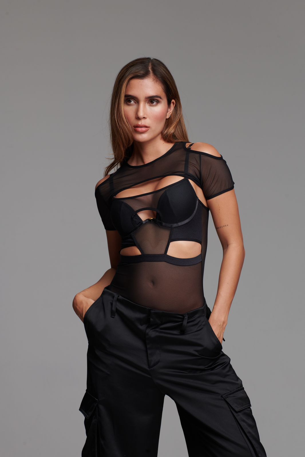 Diseñado para equilibrar sensualidad y estilo, nuestro Body Brooklyn combina un tul transparente de alta calidad con paneles opacos y una estructura pensada para realzar la silueta. El busto cuenta con varilla integrada que brinda soporte y realcé, mientras las mangas sobrepuestas aportan un detalle moderno y femenino. Detalles de cortes geométricos y terminaciones impecables hacen de este body una pieza protagonista para llevar sola o como base elegante bajo chaquetas y blazers.